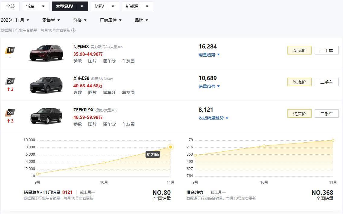 极氪9X成功了? 11月热销8121辆,比问界M9还要卖得好