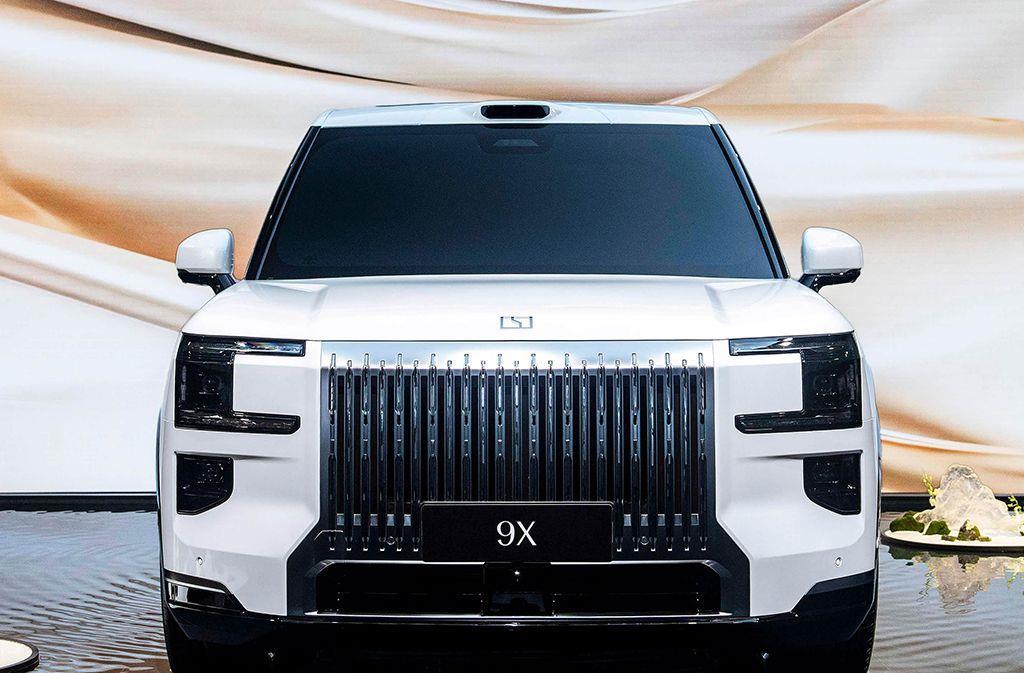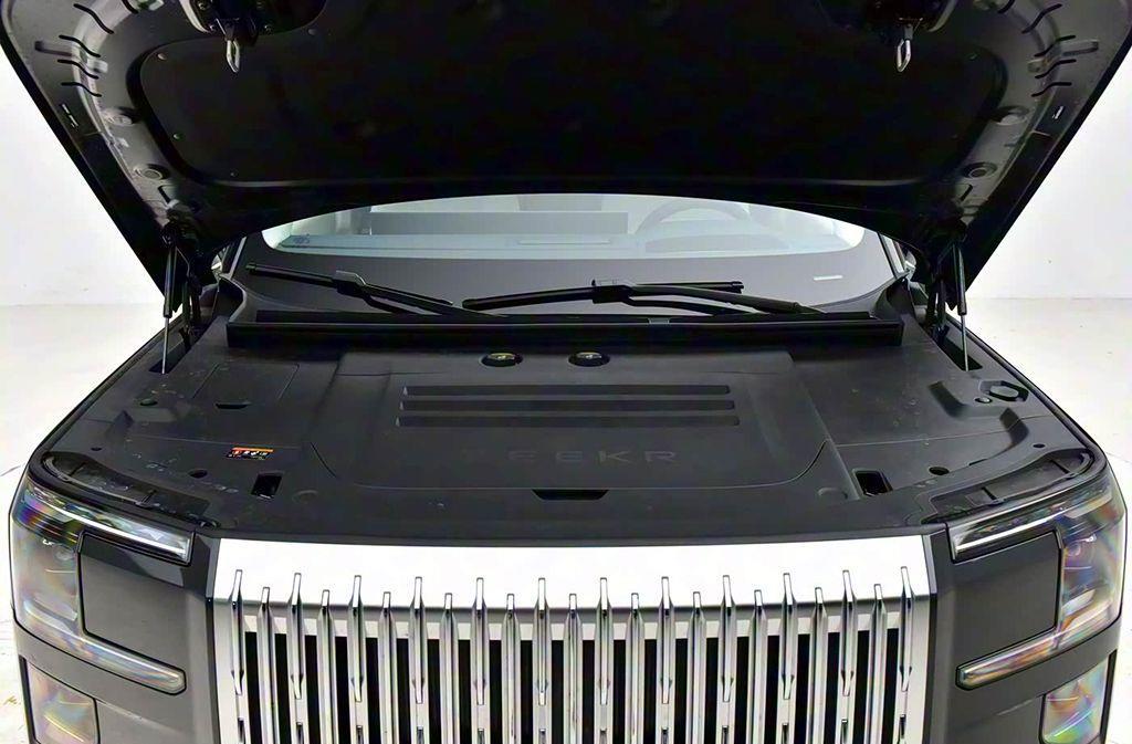 外形上,极氪9X采用极氪经典美学设计,与极氪009的设计一脉相承,前脸采用最大的一体式镀铬格栅,宽度超过120厘米,高度超过70厘米,看着的确能称得上是“杭州湾库里南”。前机舱盖采用蚌式设计,面积达到2.15平方米。格栅两侧是浩瀚星钻矩阵灯组,同样采用独特的造型,大灯组上下分体式设计,支持智能交互投影等功能。车头顶部配备激光雷达。